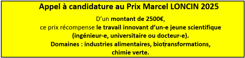 Le prix a été créé par le Professeur Marcel LONCIN (1920-1994), Professeur à l’Université de Louvain, de Karlsruhe et à l’ENSIA (AgroParisTech-Massy), consultant industriel, et auteur de l’ouvrage « Génie Industriel Alimentaire » internationalement reconnu. Ce prix est annuel et indivisible.